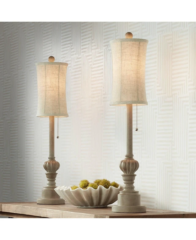 Regency Hill Traditional Buffet Table Lamps 28" Tall Set of 2 Natural Candlestick Cream Bell Shade for Dining Room