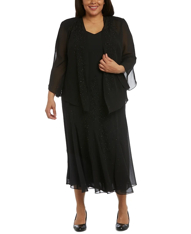 R&M Richards Plus Size Beaded V-Neck Dress and Jacket