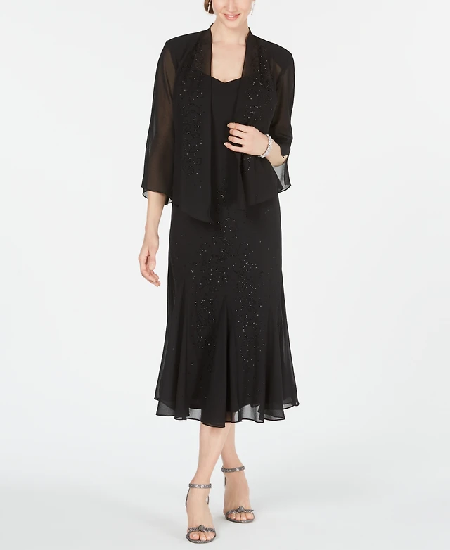R & M Richards Sleeveless Metallic Dress and Jacket