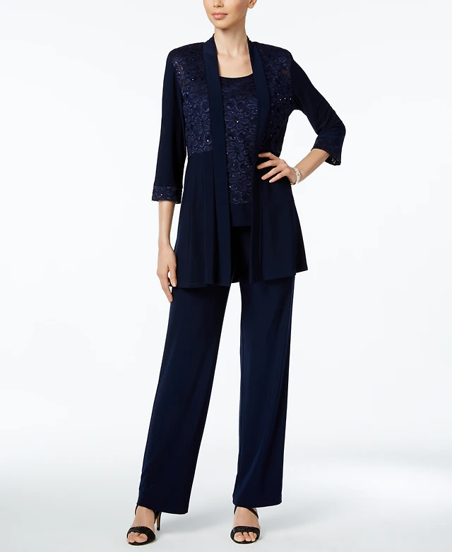 R & M Richards 3-Pc. Sequined Lace Pantsuit Jacket