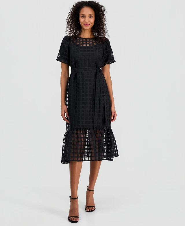 Robbie Bee Women's Bubble-Sleeve Belted Midi Dress