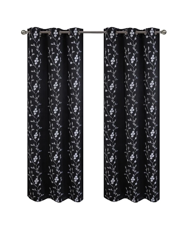Rt Designer Collection Gable Embroidered Blackout Luxurious Decorative Grommet Curtain Panel 54 X22 X Black