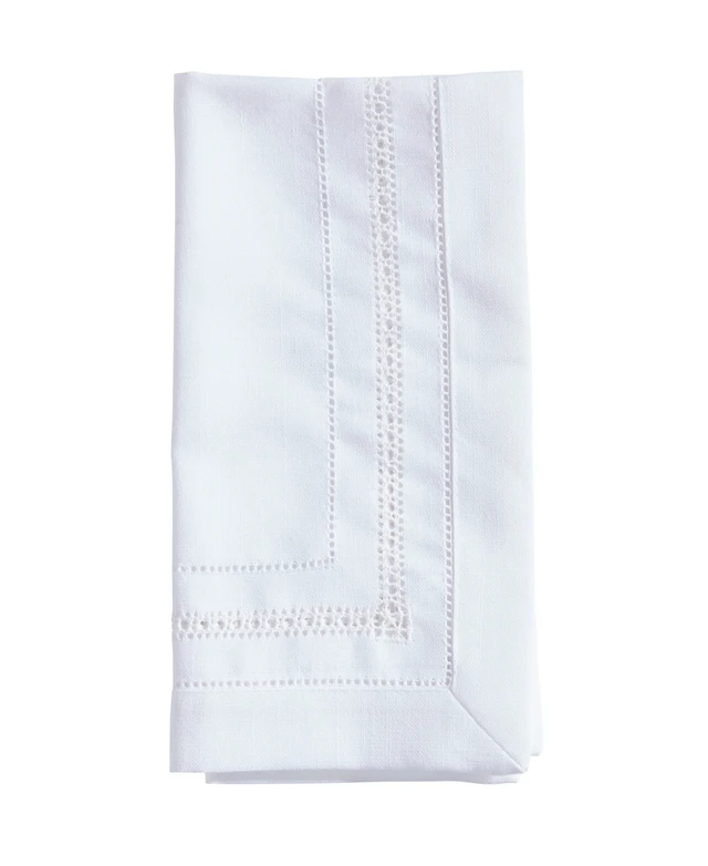 Saro Lifestyle Classic Hemstitch with Embroidered Border Dinner Napkin Set of 12, 20"x20"
