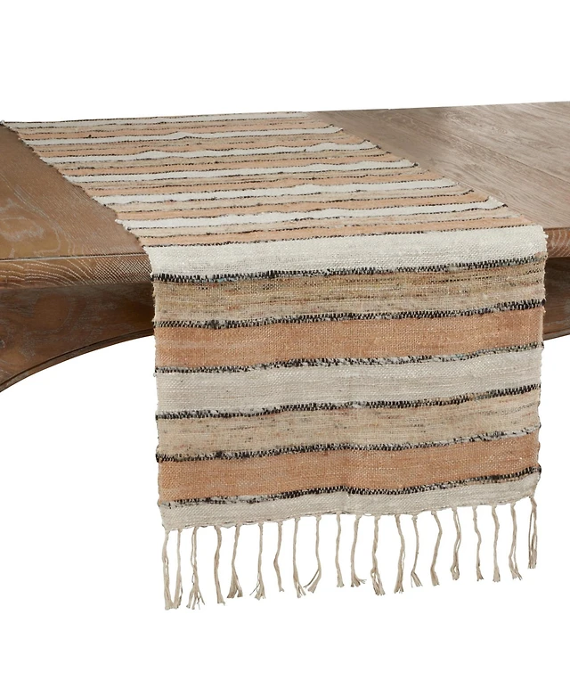 Saro Lifestyle Leather Chindi Stripe Fringed Table Runner, 16"x72"