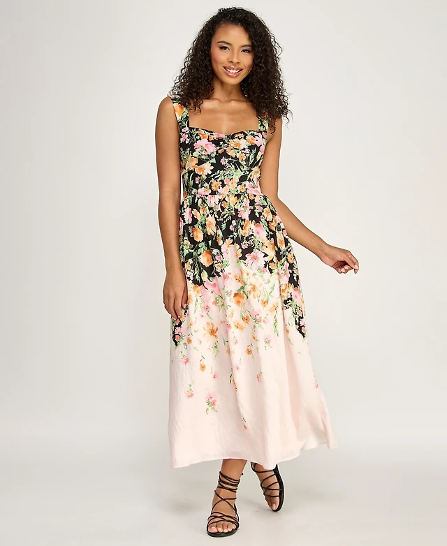 Seni & Cade Juniors' Floral Sweetheart Neck Midi Dress