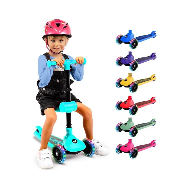 3-Wheel Foldable Kids Scooter with Led Wheel Lights, Foldable Seat & Lean-to-Steer Technology – Child Toy Scooter (Turquoise Blue)