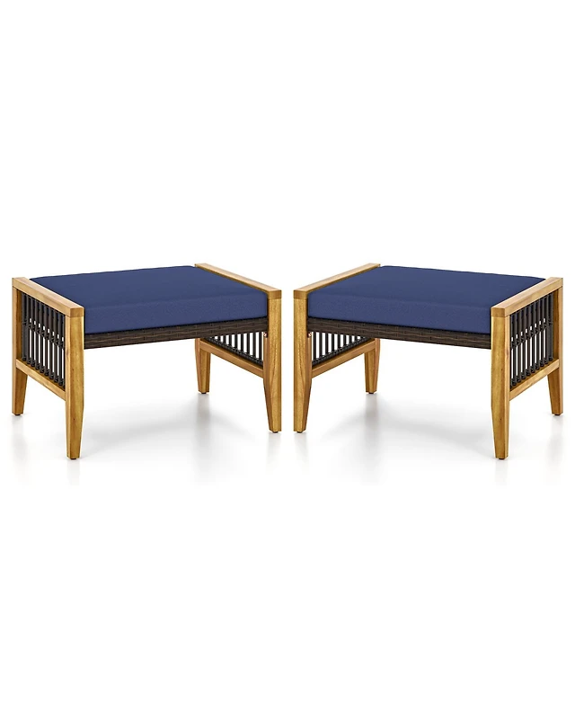 Slickblue Patio Acacia Wood Armchair with Long Ottoman and Seat Back Cushions