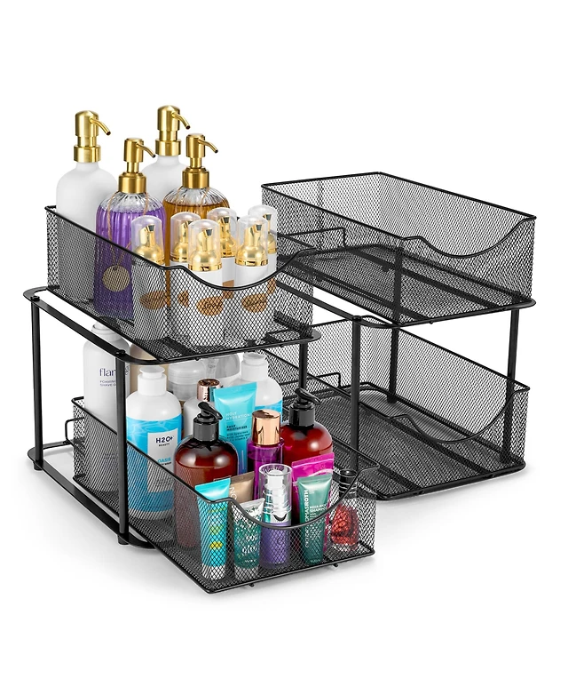 Sorbus 2 Pack 2 Tier Baskets with Mesh Sliding Drawers - Ideal Cabinet, Under the Sink, etc - Great for Bathroom, Kitchen, Office
