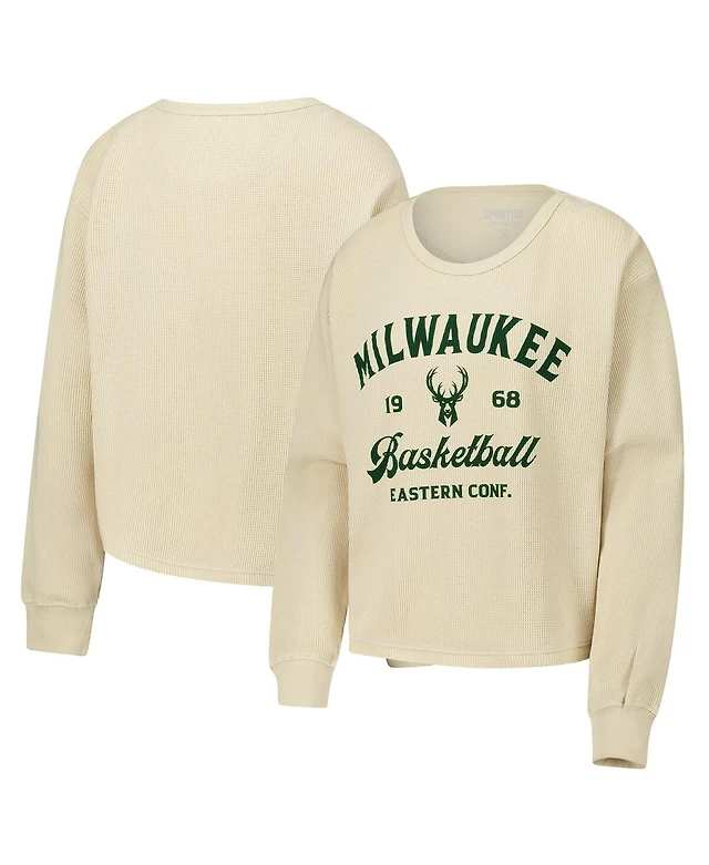 Sportiqe Men's and Women's Cream Milwaukee Bucks High Country Collection Cullen Waffle Knit Long Sleeve T-Shirt