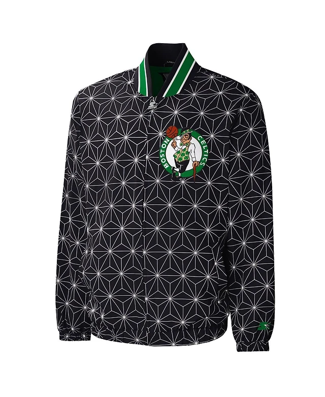 Men's Starter Black Boston Celtics In-Field Play Fashion Satin Full-Zip Varsity Jacket