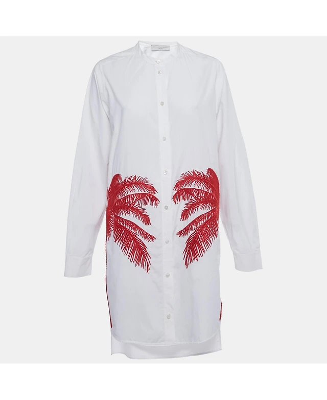 Pre-Owned Stella Mccartney Womens White Erica Palm Tree Embroidery Cotton Long Shirt Dress