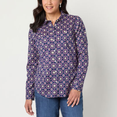 St. John's Bay Womens Roll Tab Sleeve Long Regular Fit Button-Down Shirt