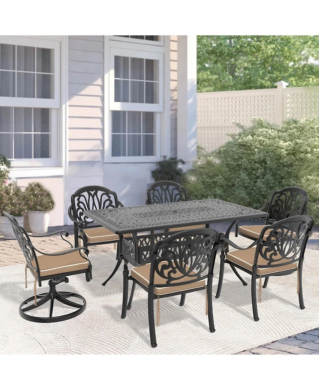 Streamdale 5-Piece Cast Aluminum Dining Set, 4 Swivel Chairs, 35" Round Table