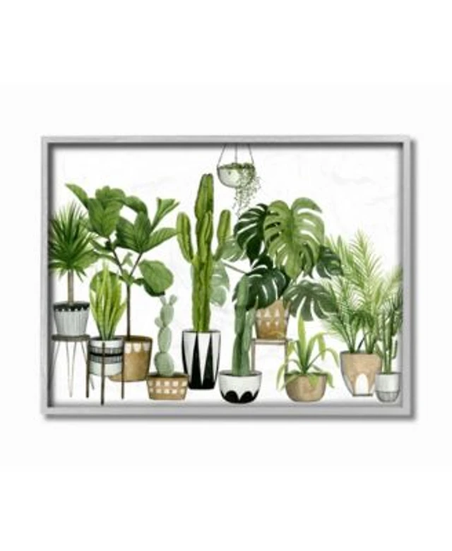 Stupell Industries Boho Plant Scene With Cacti Succulents In Geometric Pots Watercolor Gray Framed Texturized Art Collection