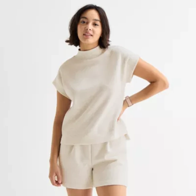 Stylus Womens Mock Neck Short Sleeve T-Shirt