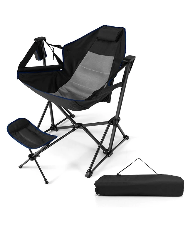 Sugift Adjustable Patio Chaise Folding Lounge Chair with Backrest-Navy
