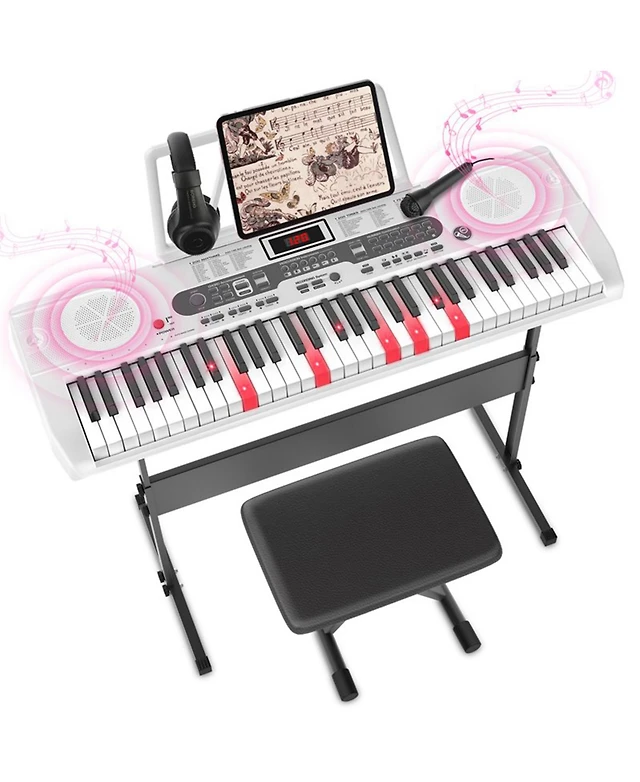 Sugift White 61 Keys Keyboard Piano, Electric Digital Piano Set with Stand, Bench, Headphones, Built-in Speakers