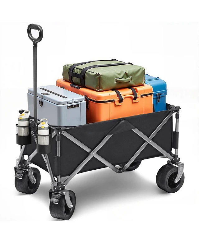 Sugift Outdoor Folding Wagon Cart with Adjustable Handle and Universal Wheels-Red