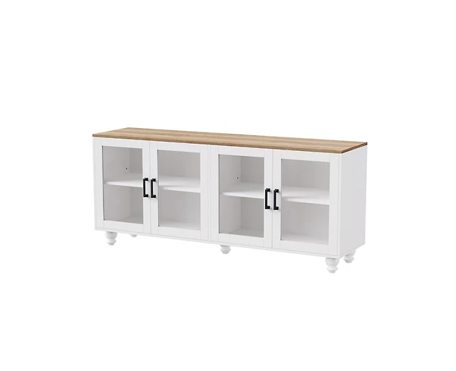 Farmhouse Storage Cabinet Tv Stand with Tempered Glass Doors And Adjustable Shelves