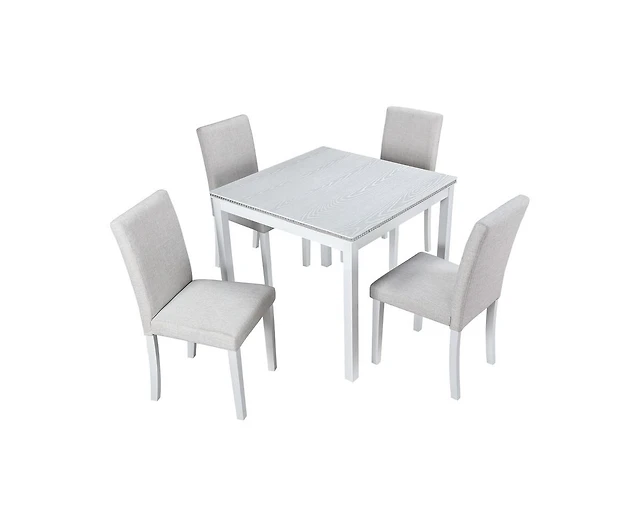 sumyeg 5-Piece Silver Grey Crystal Accent Wood Dining Set with Rectangular Table and 4 Upholstered Chairs