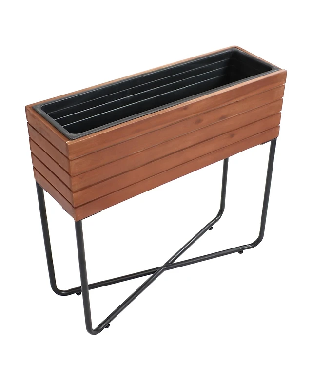 Acacia Wood Slatted Planter Box with Removable Insert - 24" W x 8.25" D x 8.75" H