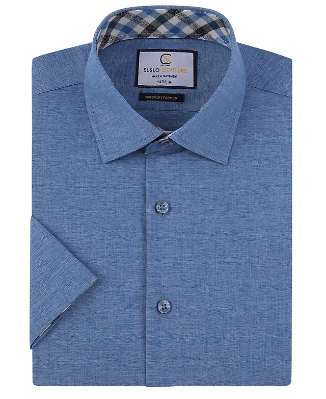 Suslo Couture Men's Slim Fit Linen Look Short Sleeve Button Down Shirt