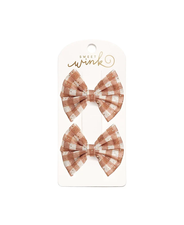 Sweet Wink Girls Gingham Printed Tulle Bow Clip Set