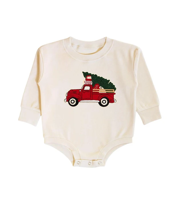 Sweet Wink Baby Boys Christmas Truck Patch Long Sleeve Romper