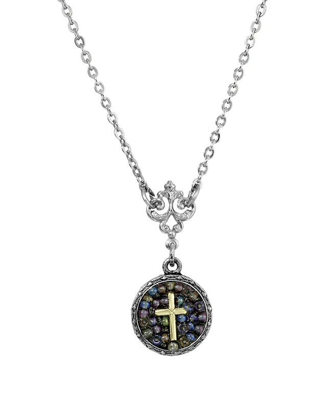 Symbols Of Faith Silver-Tone Cross Pendant Necklace 16" Adjustable
