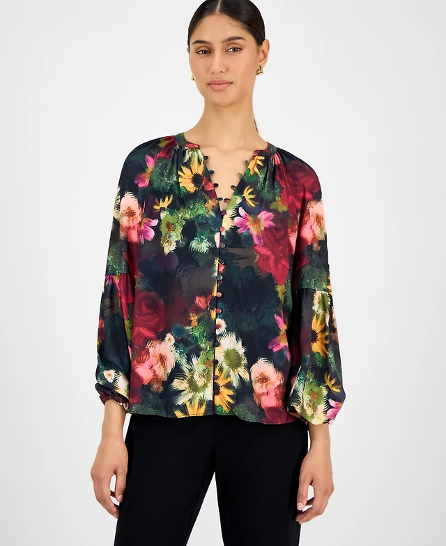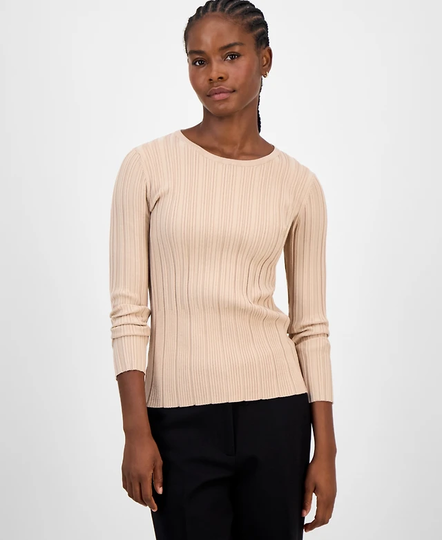 T Tahari Women's Embroidered-Sleeve Crewneck Sweater