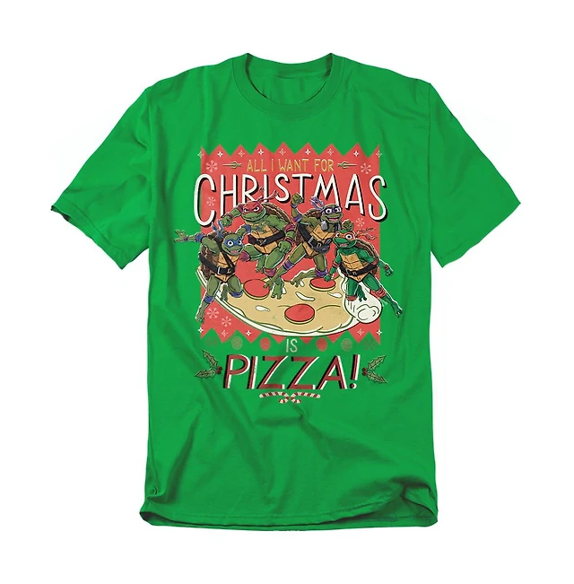 Teenage Mutant Ninja Turtles Men's Mayhem All I Want For Christmas Is Pizza T-Shirt