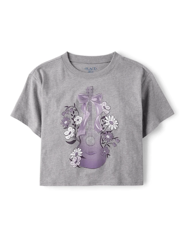 Girls Guitar Relaxed Cropped Graphic Tee
