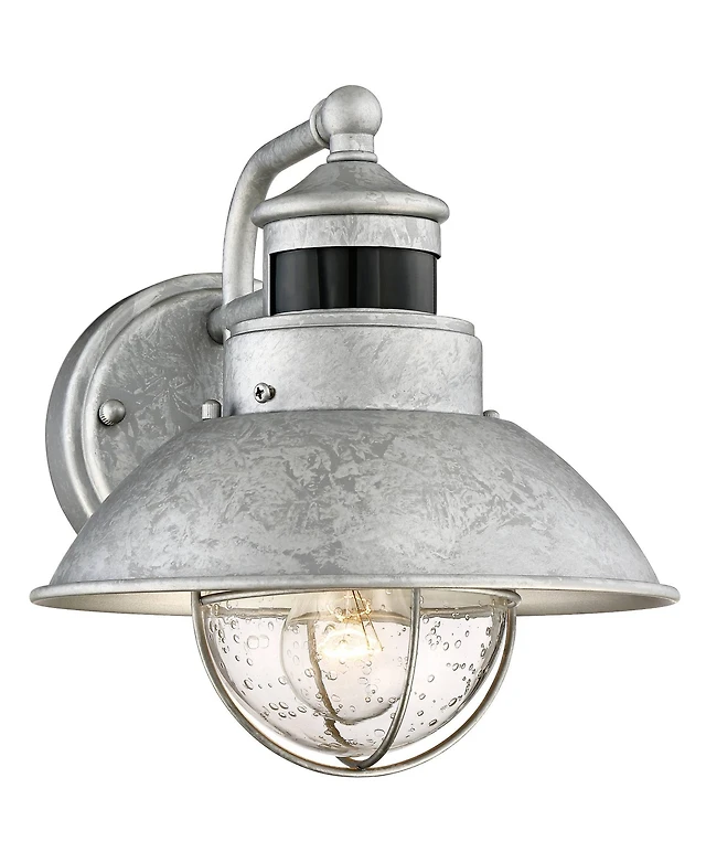 Moray Bay Industrial Outdoor Wall Light Fixture Black Steel 11 1/2" Seedy Glass Motion Sensor Dusk to Dawn for Exterior House Porch Patio Outside Deck
