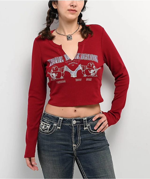 True Religion Crystal Red Relaxed Crop Zip Hoodie