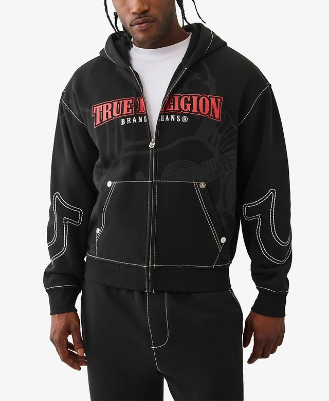 True Religion Men's Cinched Big T Zip Up Hoodie