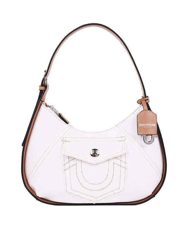 True Religion Studded Horseshoe Eyelet Denim Flap Bag