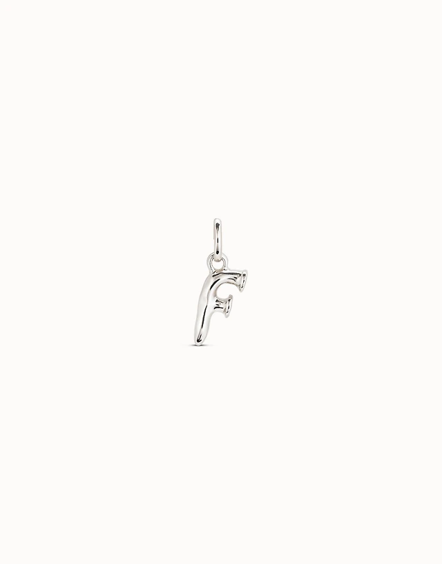 Sterling silver-plated padlock charm with topaz letter F