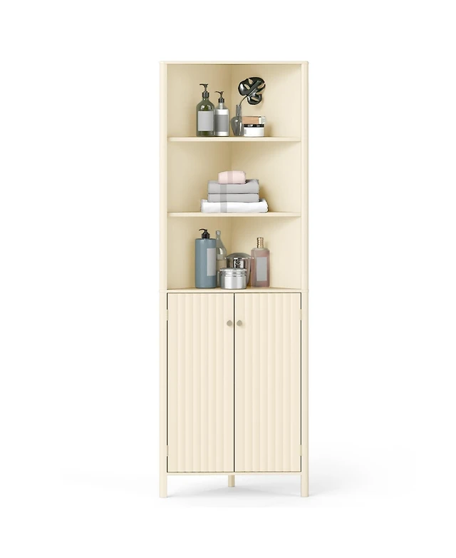 Volenca 67" Tall Narrow Bathroom Floor Cabinet with Fluted Door, Slim Storage Tower