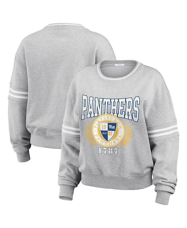 Wear by Erin Andrews Women's Heather Gray Pitt Panthers Classic Stripe Pullover Sweater