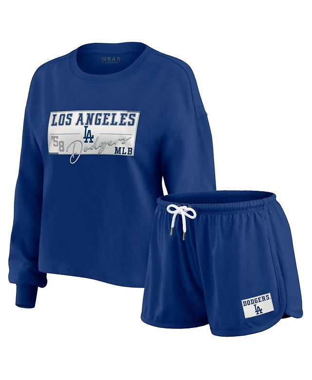 Wear by Erin Andrews Women's 2-Piece Royal Los Angeles Dodgers Heavy Rugby Jersey Long Sleeve T-Shirt and Shorts Lounge Set