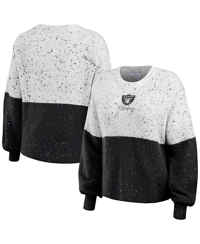 Women's Wear by Erin Andrews White, Black Las Vegas Raiders Color-Block Pullover Sweater