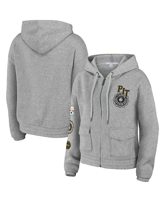 Women's Wear by Erin Andrews Heather Gray Pittsburgh Steelers Full-Zip Hoodie