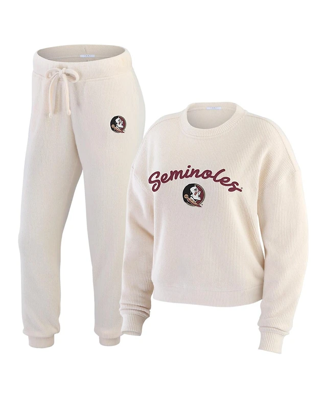 Wear by Erin Andrews Women's Cream Florida State Seminoles Rib-Knit Long Sleeve T-Shirt Pants Lounge Set