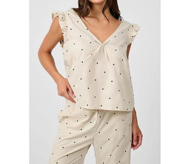 Ruffle Sleeve Boxy Top Ruffle Pull On Pants Pajama Set