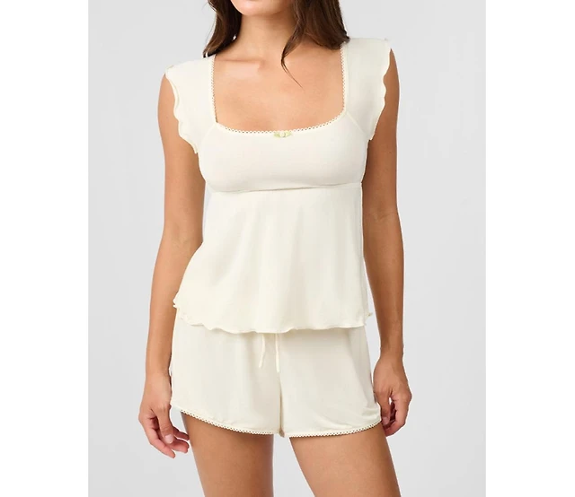 Square Neck Babydoll Top Pull On Short Pajama Set