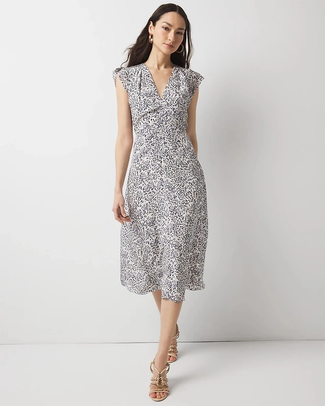Petite Twist-Front Pleated Midi Dress