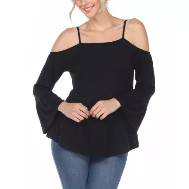 White Mark Plus Cold Shoulder Ruffle Sleeve Top
