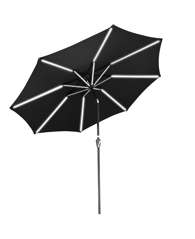9ft Solar Power Led Patio Umbrella Outdoor Yard Parasol Sunshade Tilt with Crank