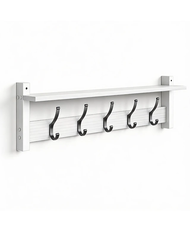 Yigii Wood Wall Shelf With Hidden Hooks For Entryway Bathroom Kitchen