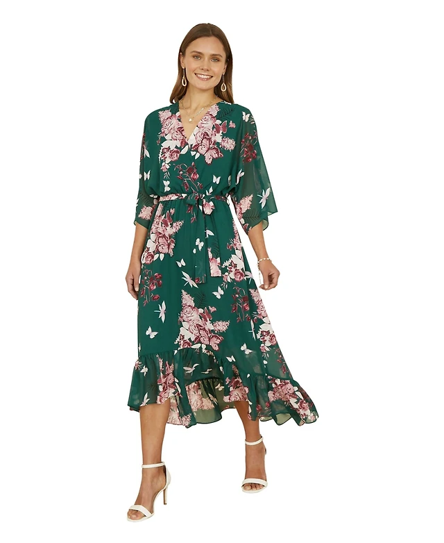 Yumi Women's Floral Kimono Dipped Hem Dress